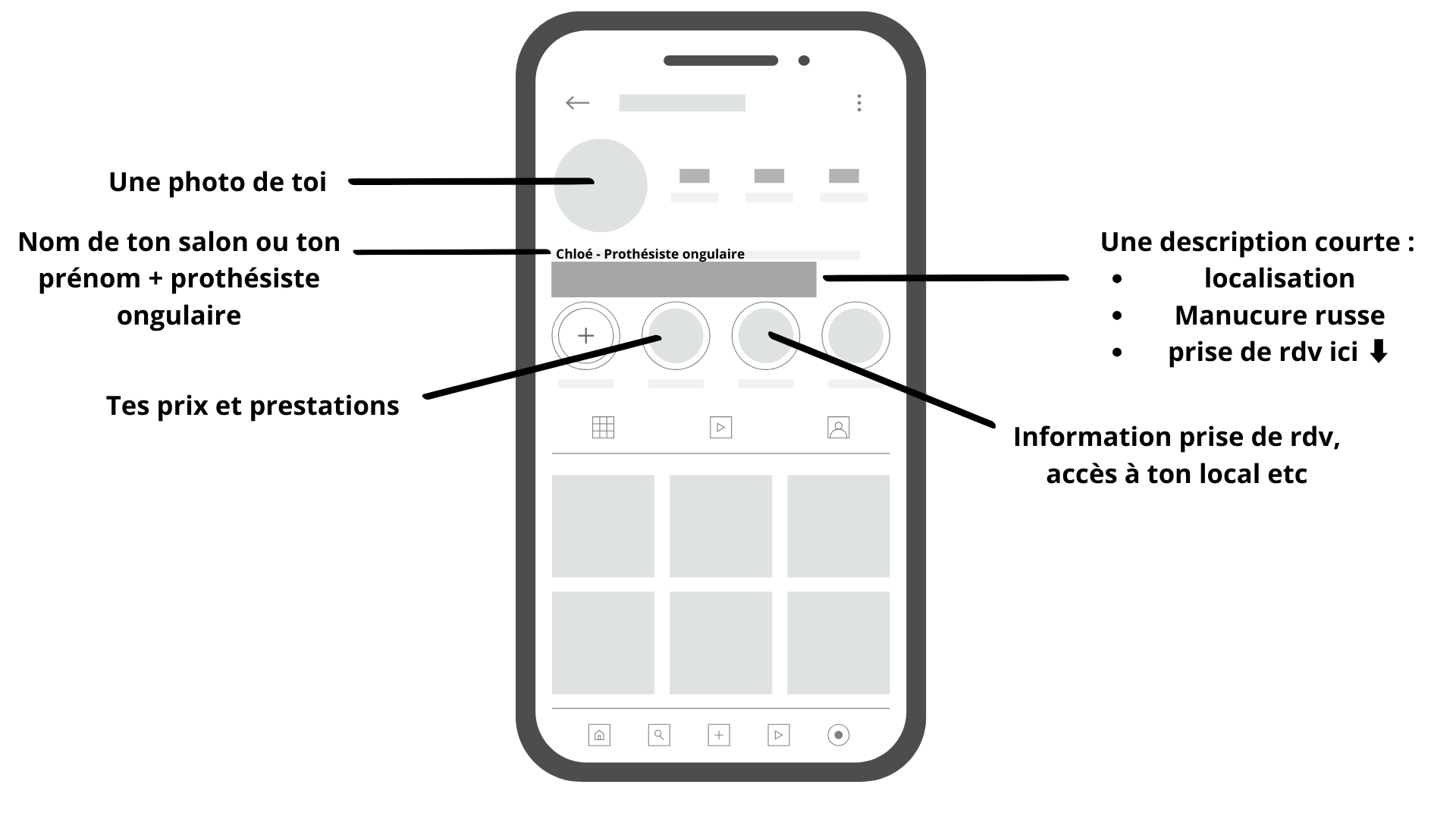 Ensuite, utilise les stories à la une pour y ajouter tes tarifs, tes prestations, et tout ce qui peut donner envie aux nouvelles clientes de réserver avec toi. En étant transparente sur tes prix et les services offerts, tu élimines une bonne partie des questions préliminaires, ce qui facilite les réservations.